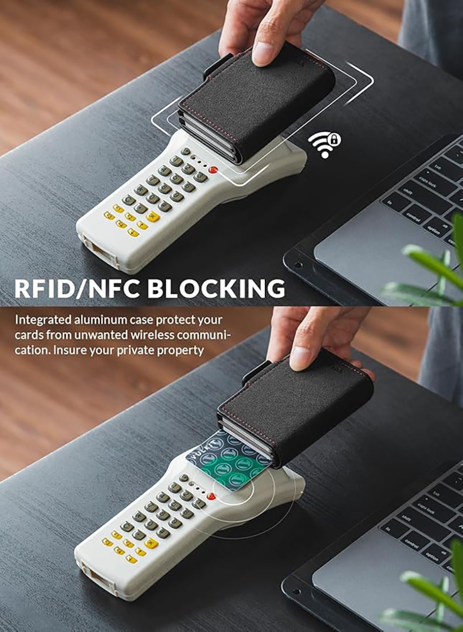 VULKIT Card Holder / RFID Protection / Holds 1 to 6 Cards / Black