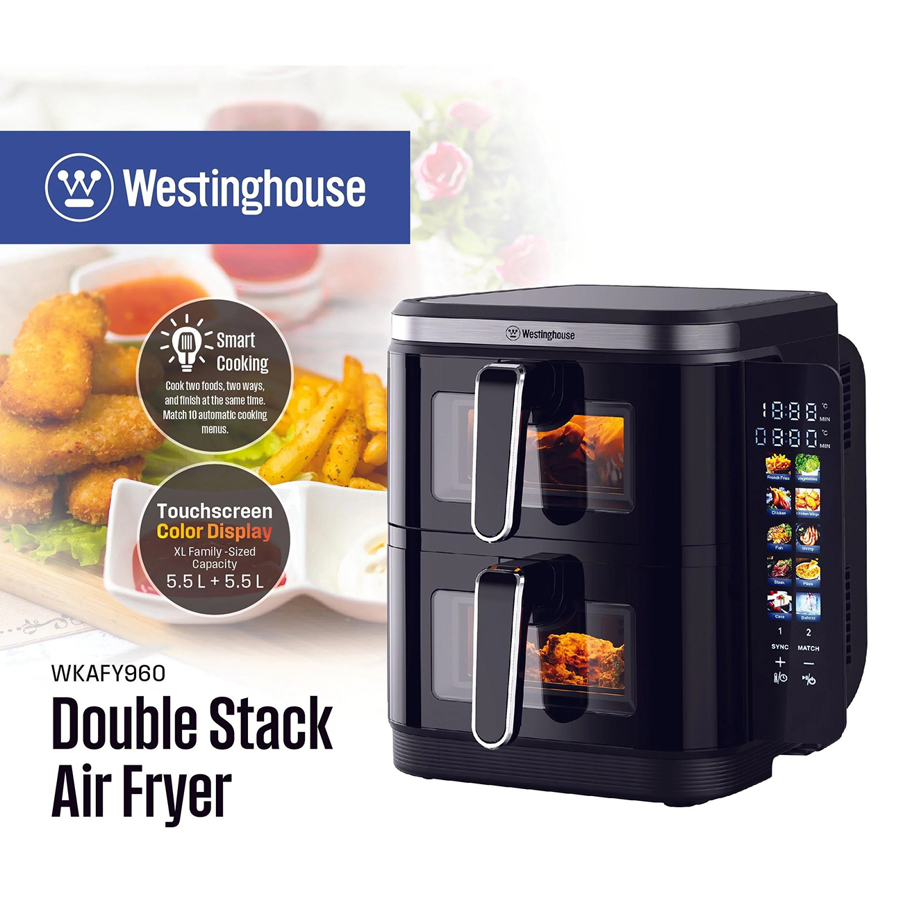 Westinghouse Dual Air Fryer / 10.5L Capacity / Digital Display / Touch Control