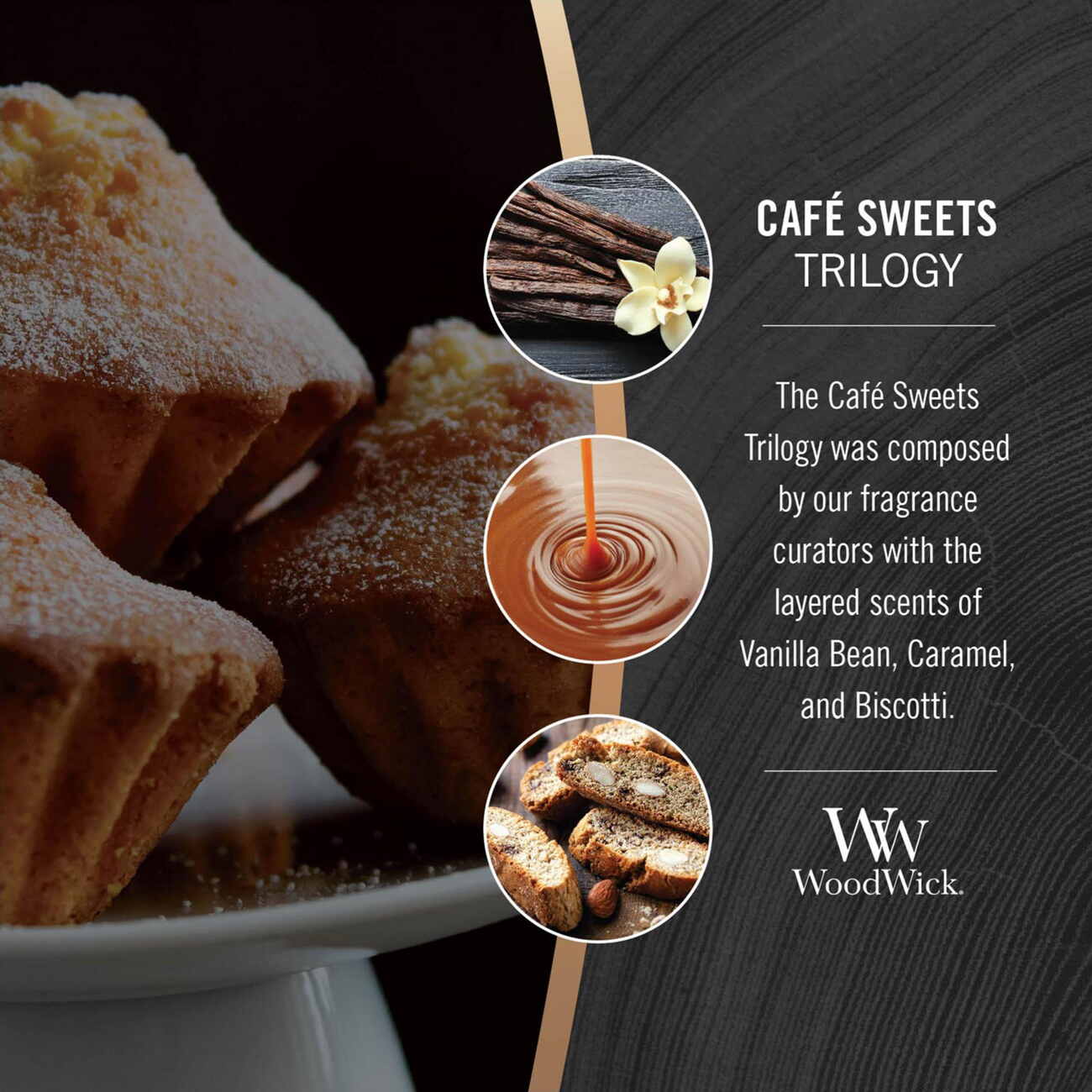 Scent: Warm and enticing café aroma with notes of vanilla, caramel, and biscuits.