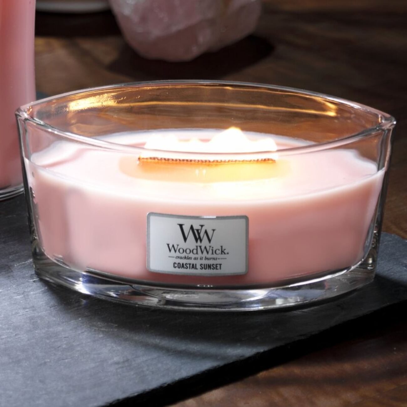 A scented candle from the renowned WoodWick company, specialized in scented candles, offers you the following: