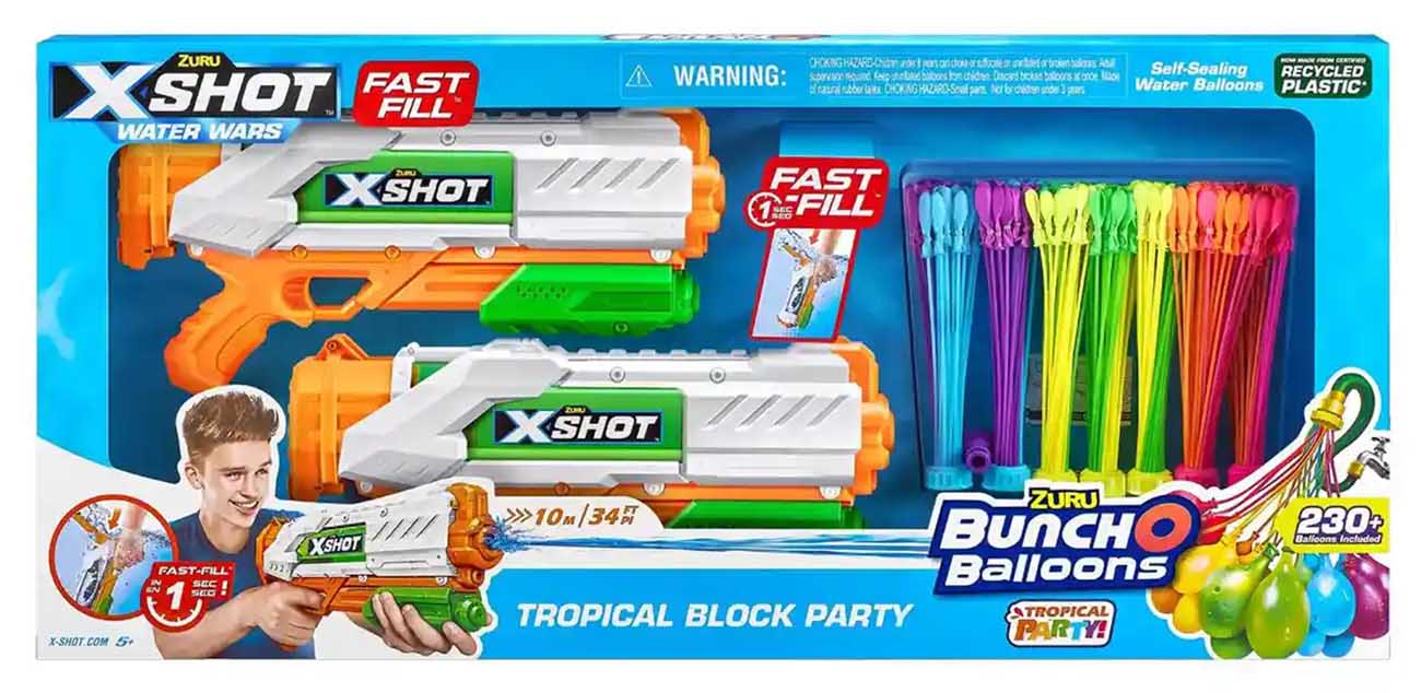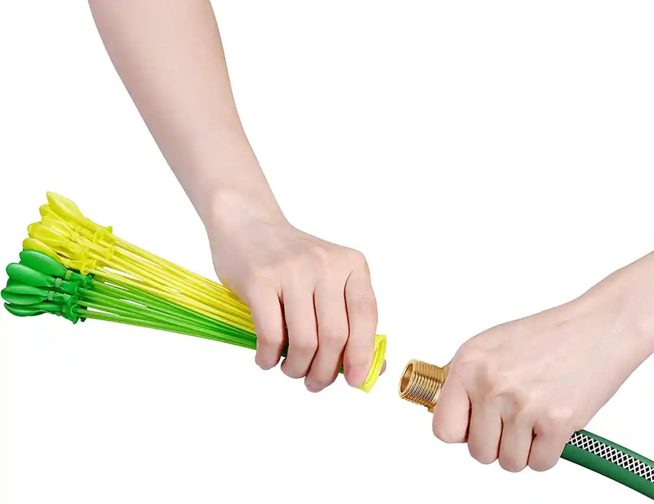 Includes over 230 balloons that can be filled and tied in less than 60 seconds.