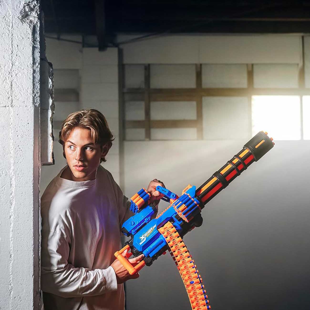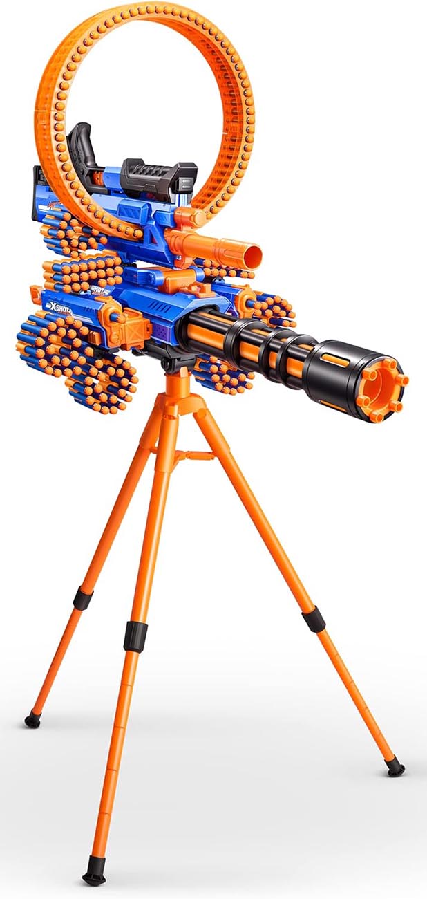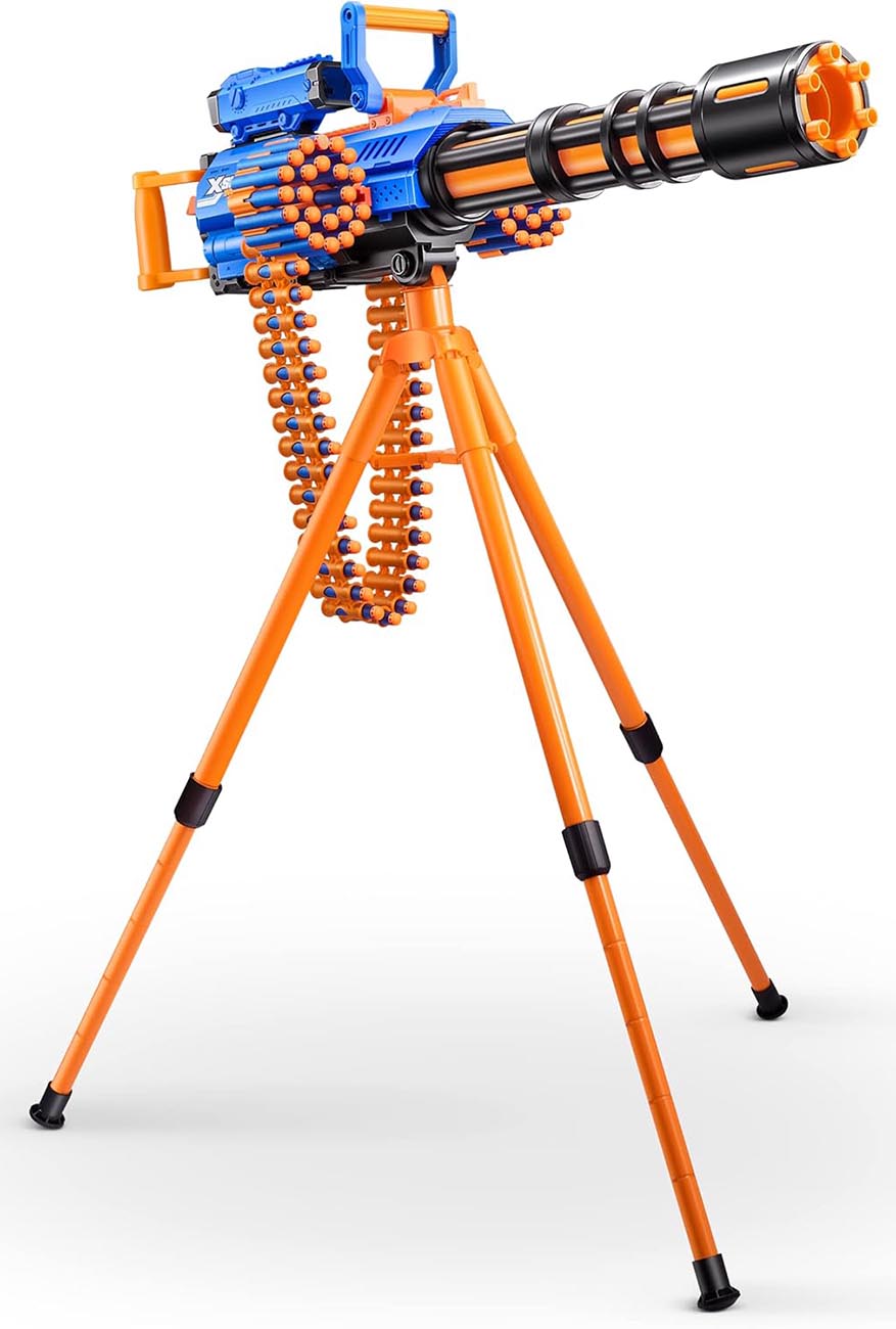 Introducing this amazing toy from X-Shot – a motorized gun with a powerful engine and tripod stand.