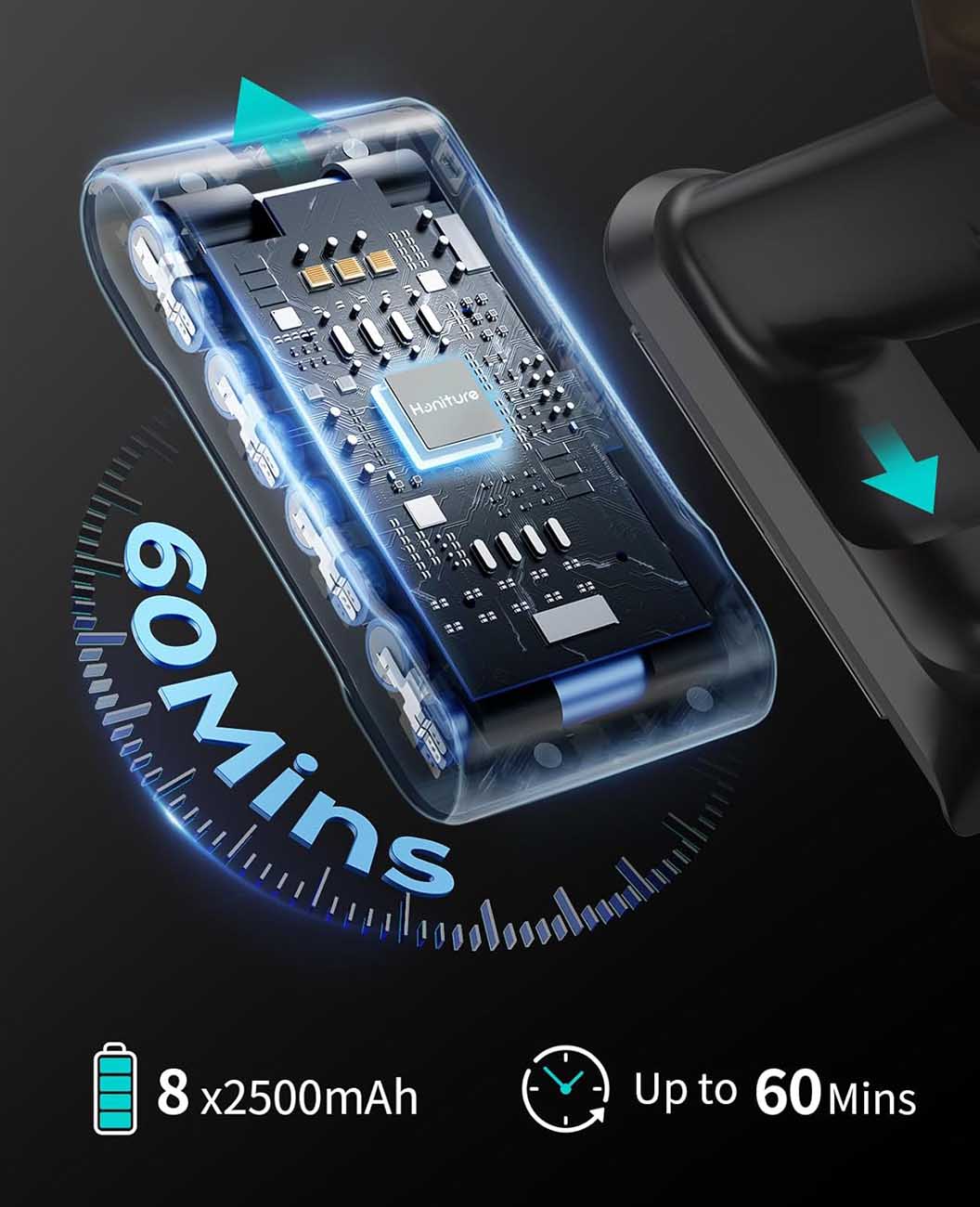 Battery-powered with a 2,500mAh capacity.