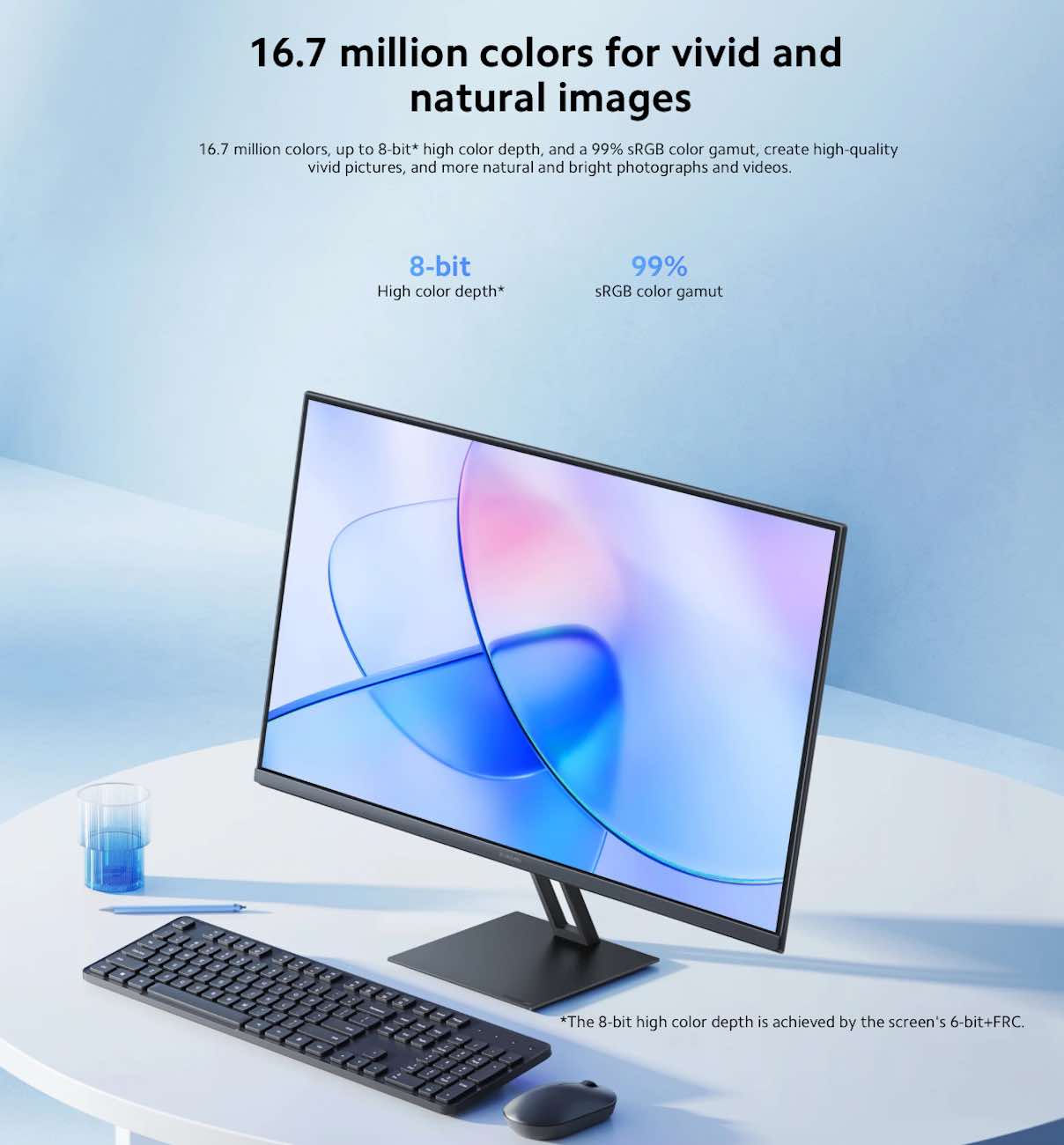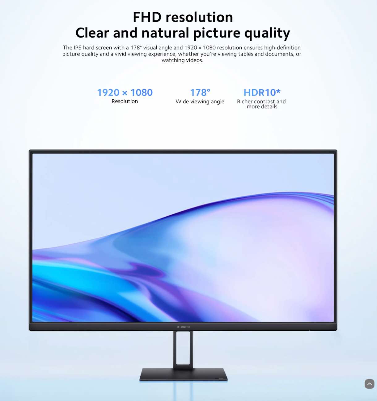 A new monitor from Xiaomi with excellent size, beautiful colors, and elegant design.