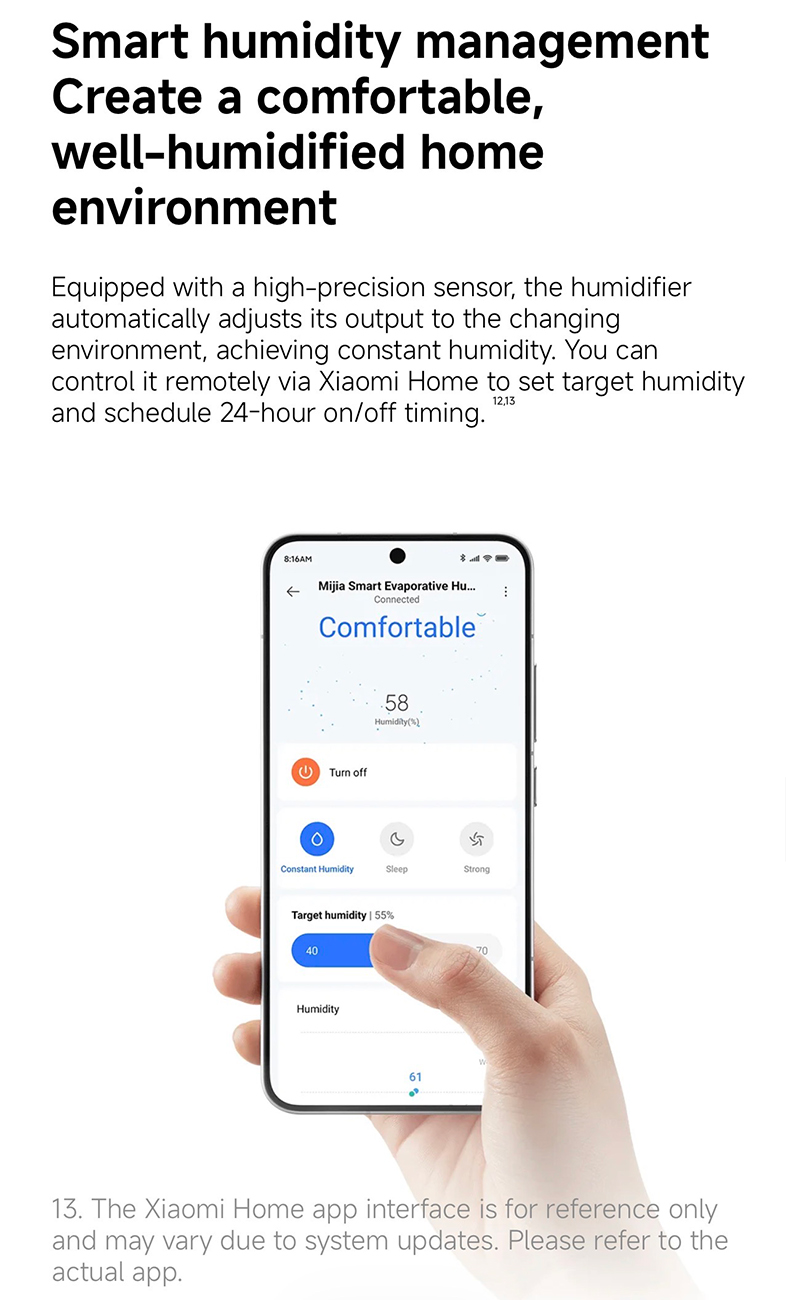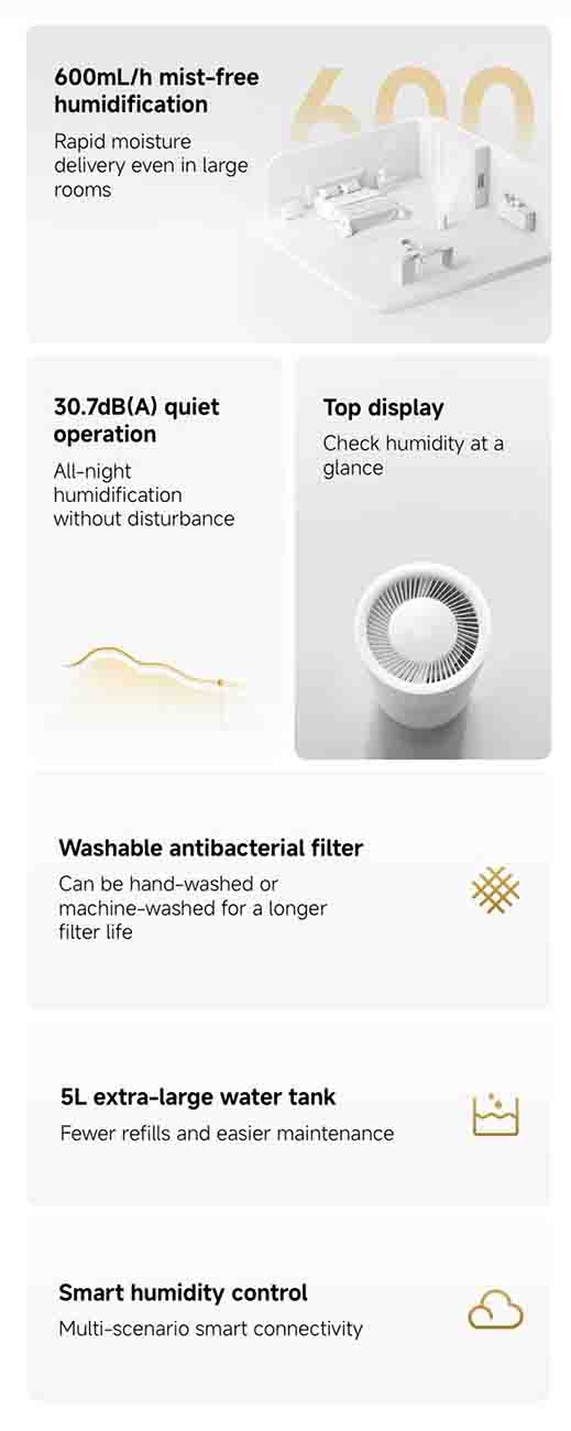 Xiaomi Smart Evaporative Humidifier Pro / Capacity 5L / App Control / Covers 30 m² / LED Display