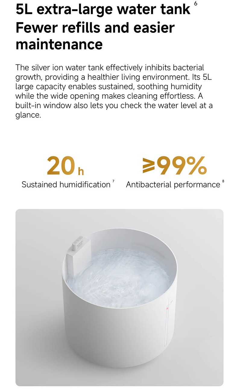 Water tank capacity: 5 liters, providing up to 20 hours of continuous use.