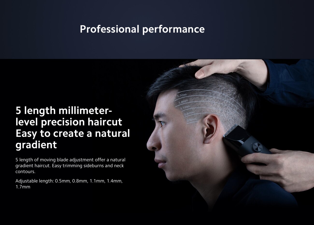 Xiaomi Hair Clipper has 5 lengths of blade adjustment for natural gradient haircut.