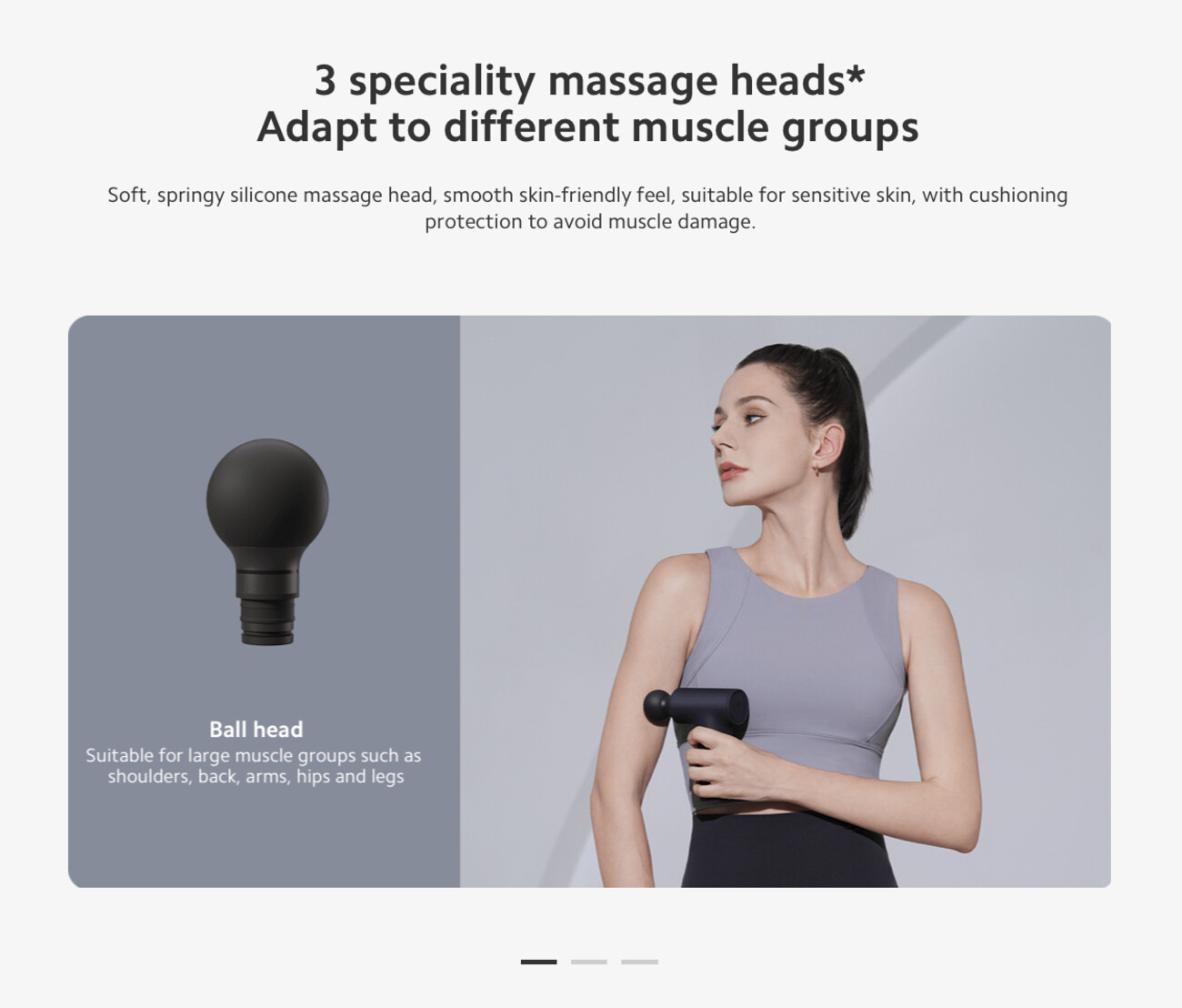 Ball head, suitable for large muscle groups such as shoulders, back, arms, hips and legs.