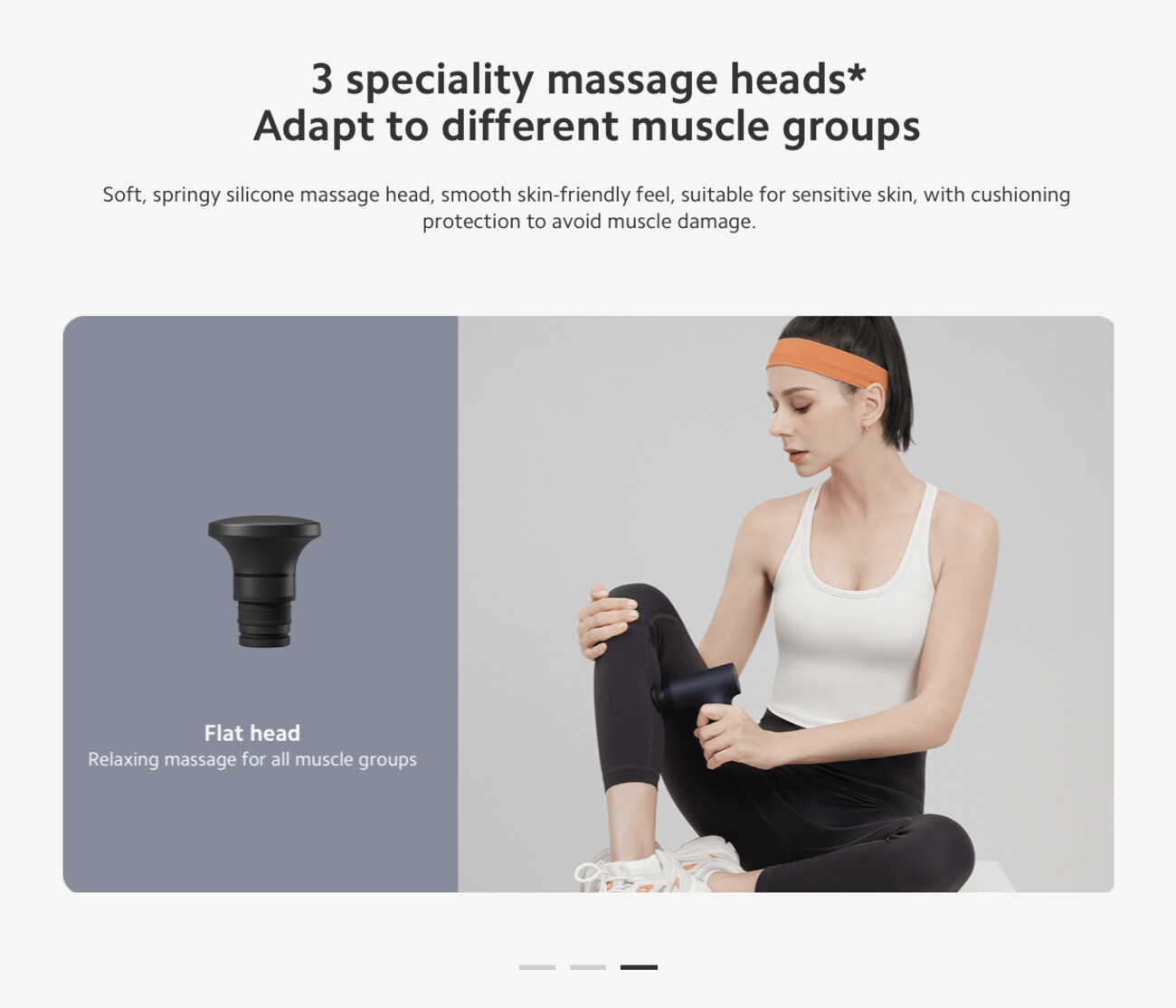 Soft, springy silicone massage head, smooth skin-friendly feel, suitable for sensitive skin, with cushioning protection to avoid muscle damage.