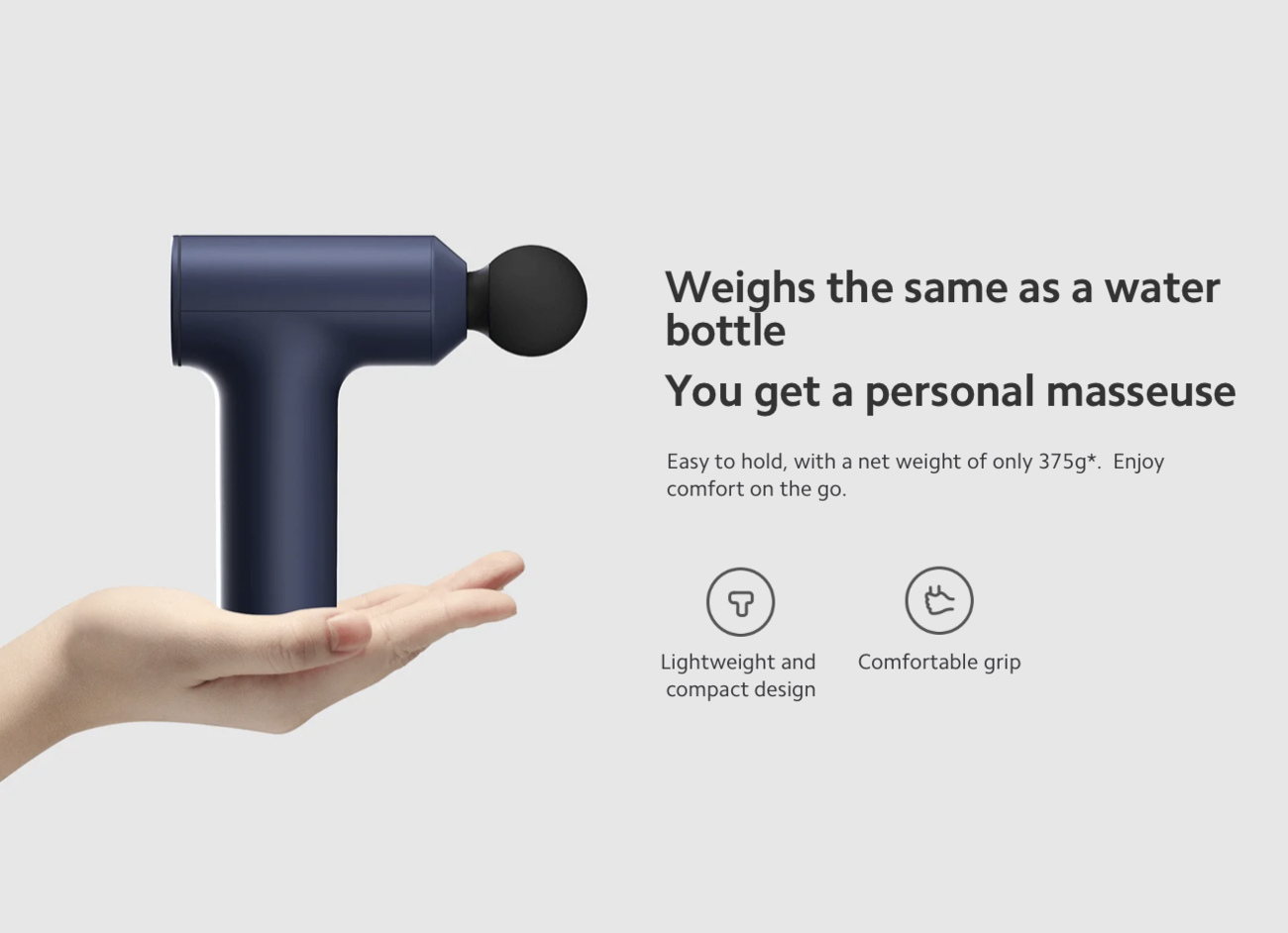 Easy to hold, with a net weight of only 375g. Enjoy comfort on the go.