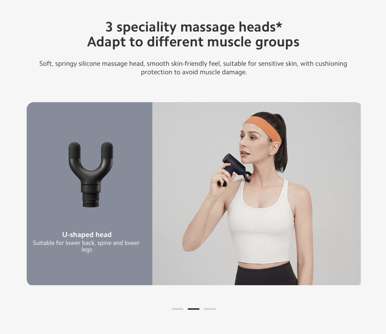 U-shaped head, suitable for lower back, spine and lower legs.