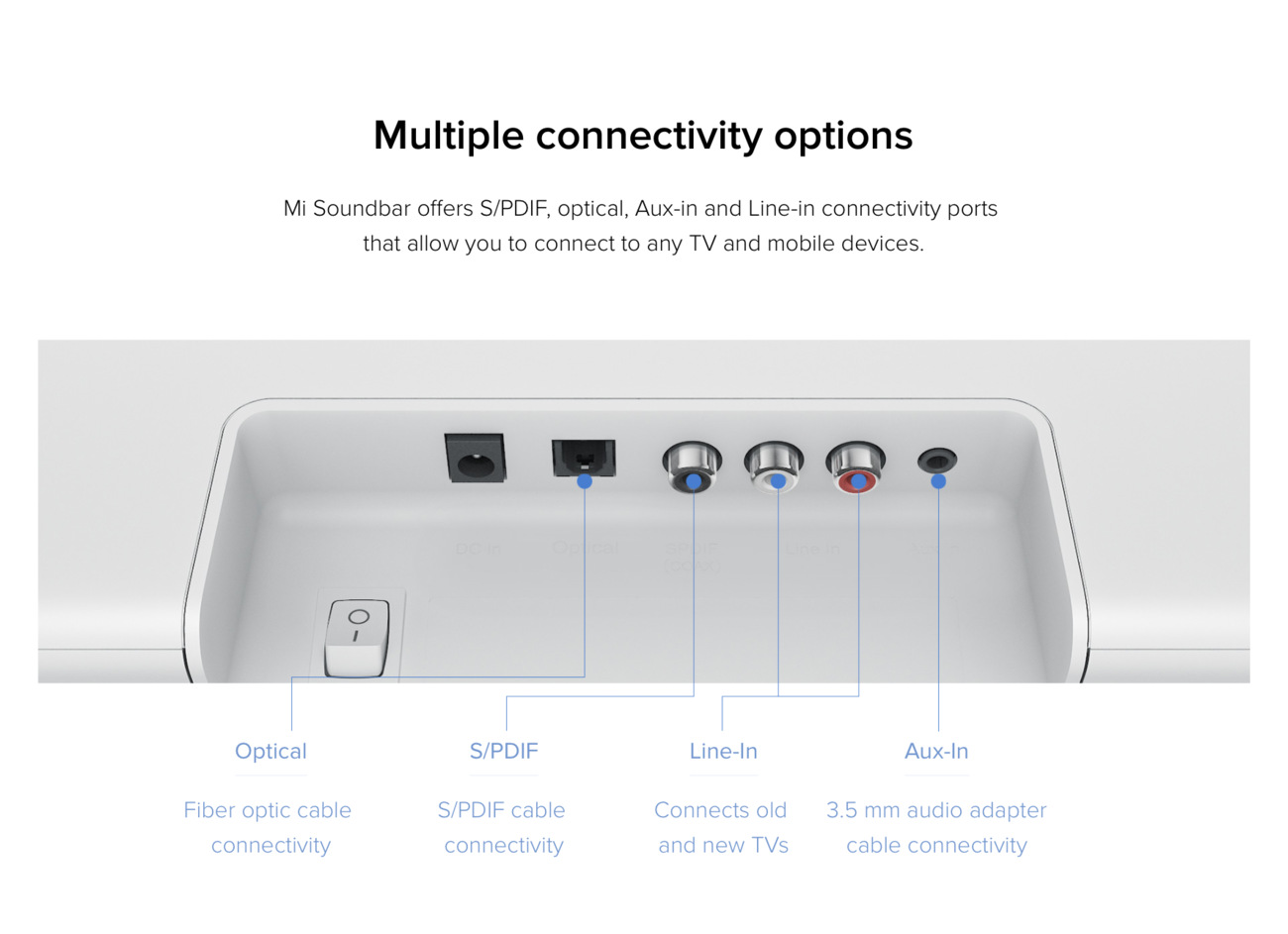 Simple one-cable connection to your TV with AUX, Line-in, SPDIF, or Optical.