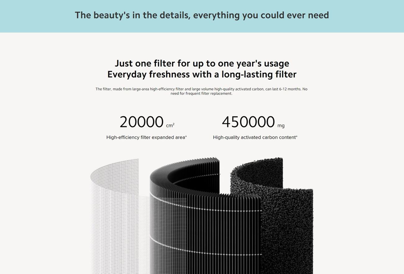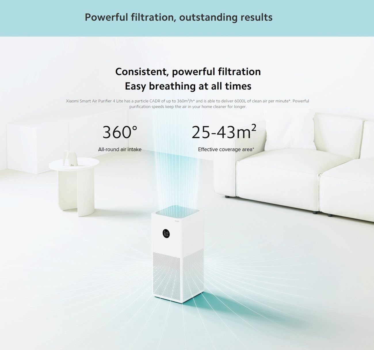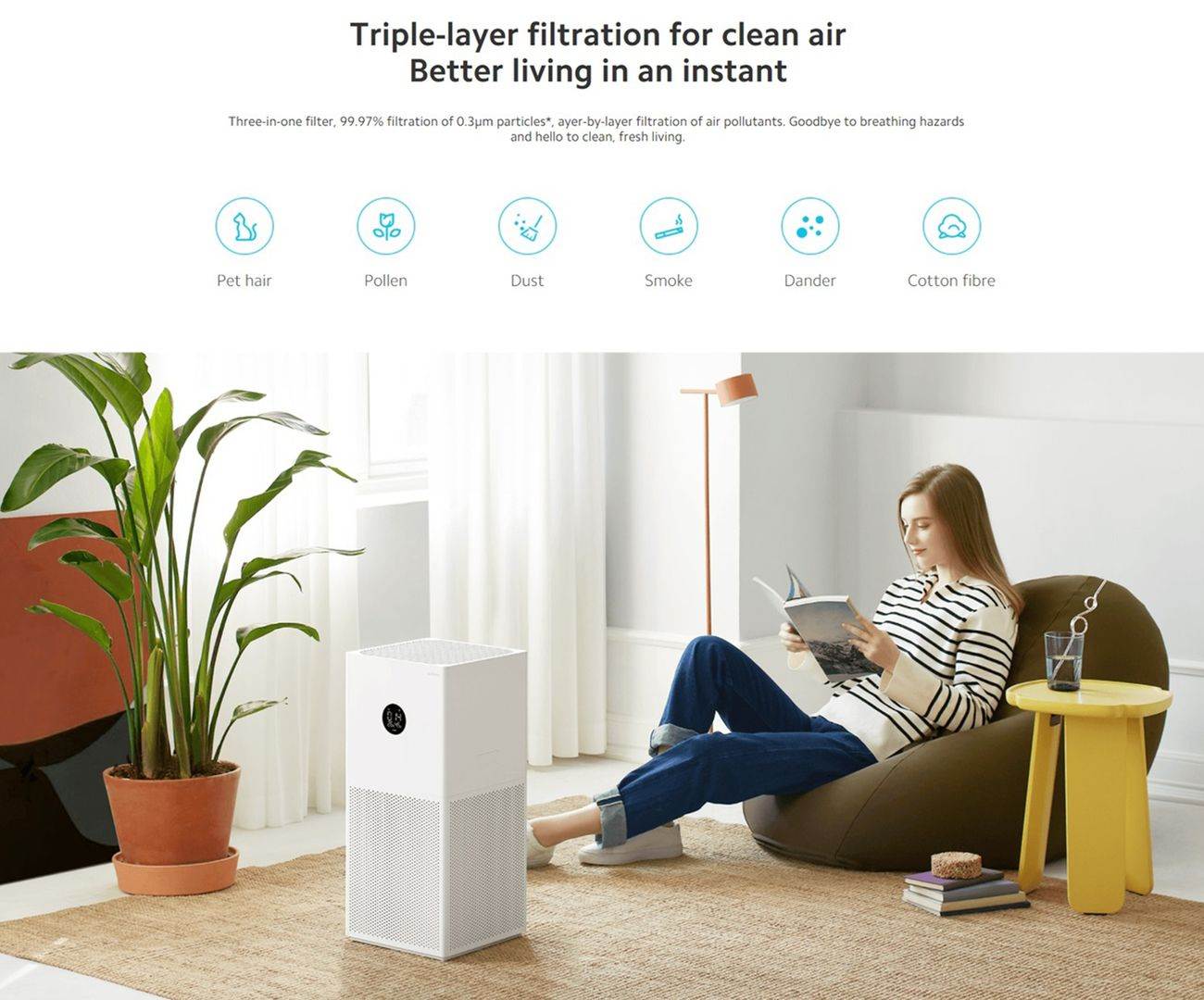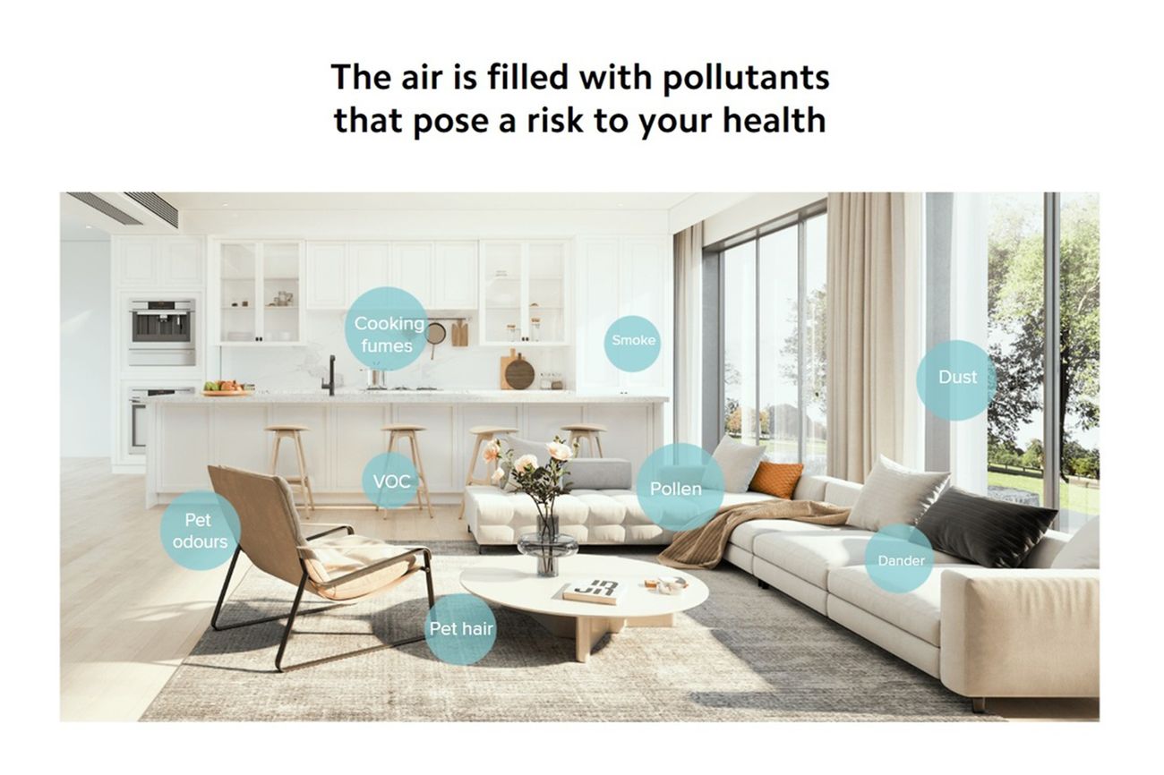 PCADR 360m3/h and FCADR 120m3/h, eliminate 99.97% pet hair, dust, pollen, smoke, TVOC and fine particles up to 0.3 microns, less than 1% of the diameter of a hair; to purify a room of 120sqm is enough for an hour.