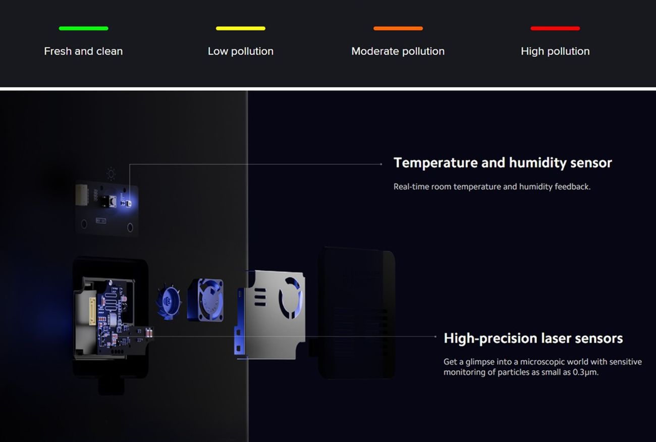 The air quality index of pollutants PM 2.5 can be visible at a glance; display of temperature, humidity and operating status.