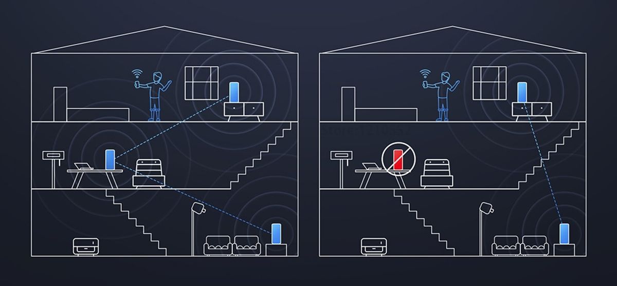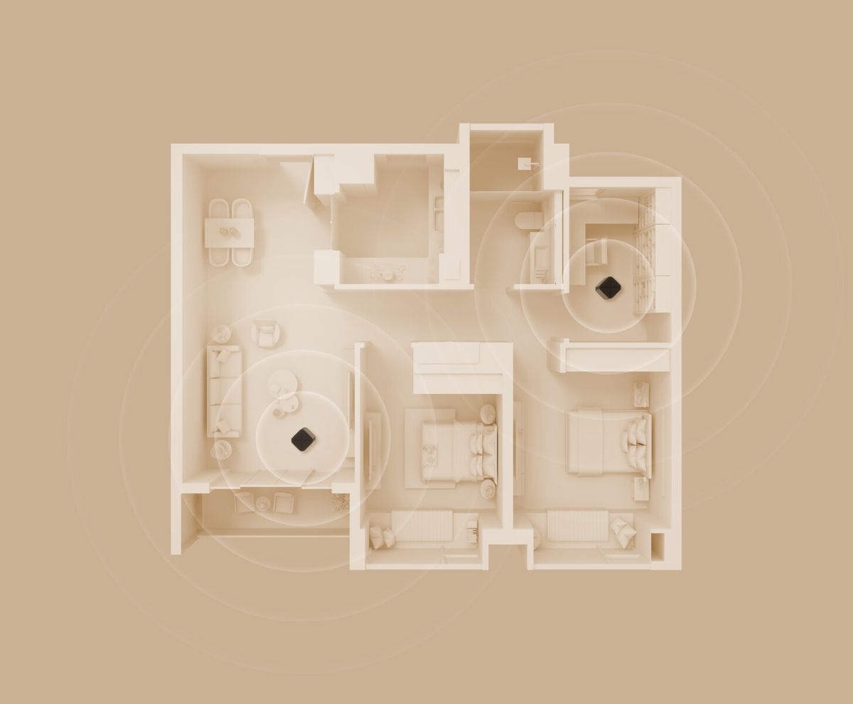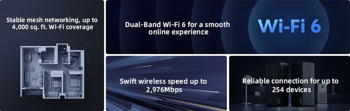 Combines into a mesh network that provides Wi-Fi 6 coverage throughout the home, covering up to 4,000 square feet of space.