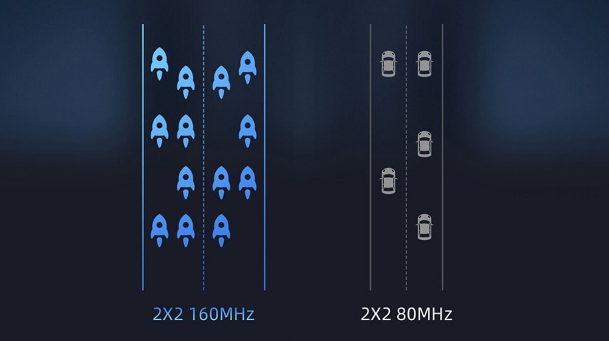 Offers 2.4GHz and 5GHz bands, each with 802.11ax technology.