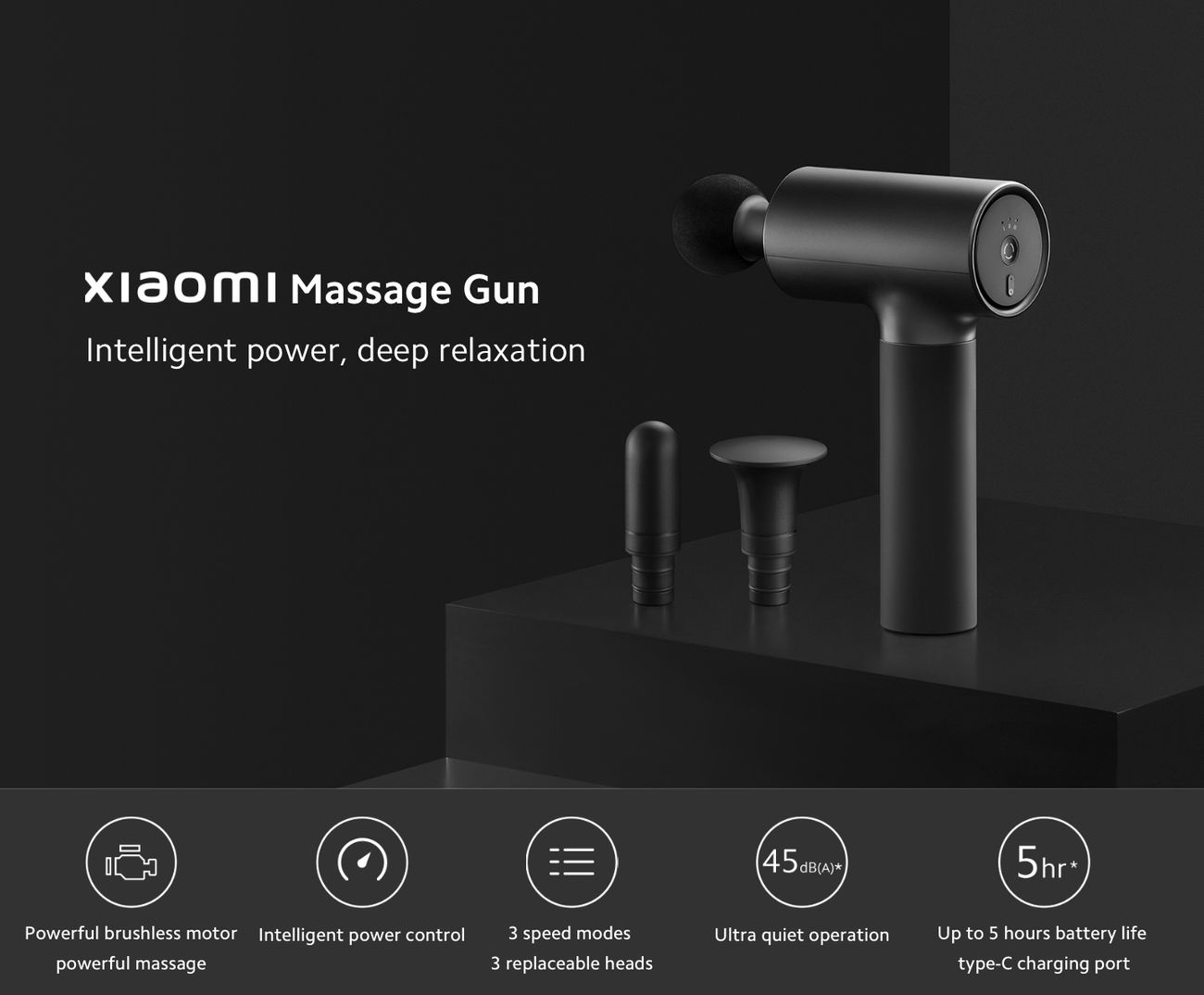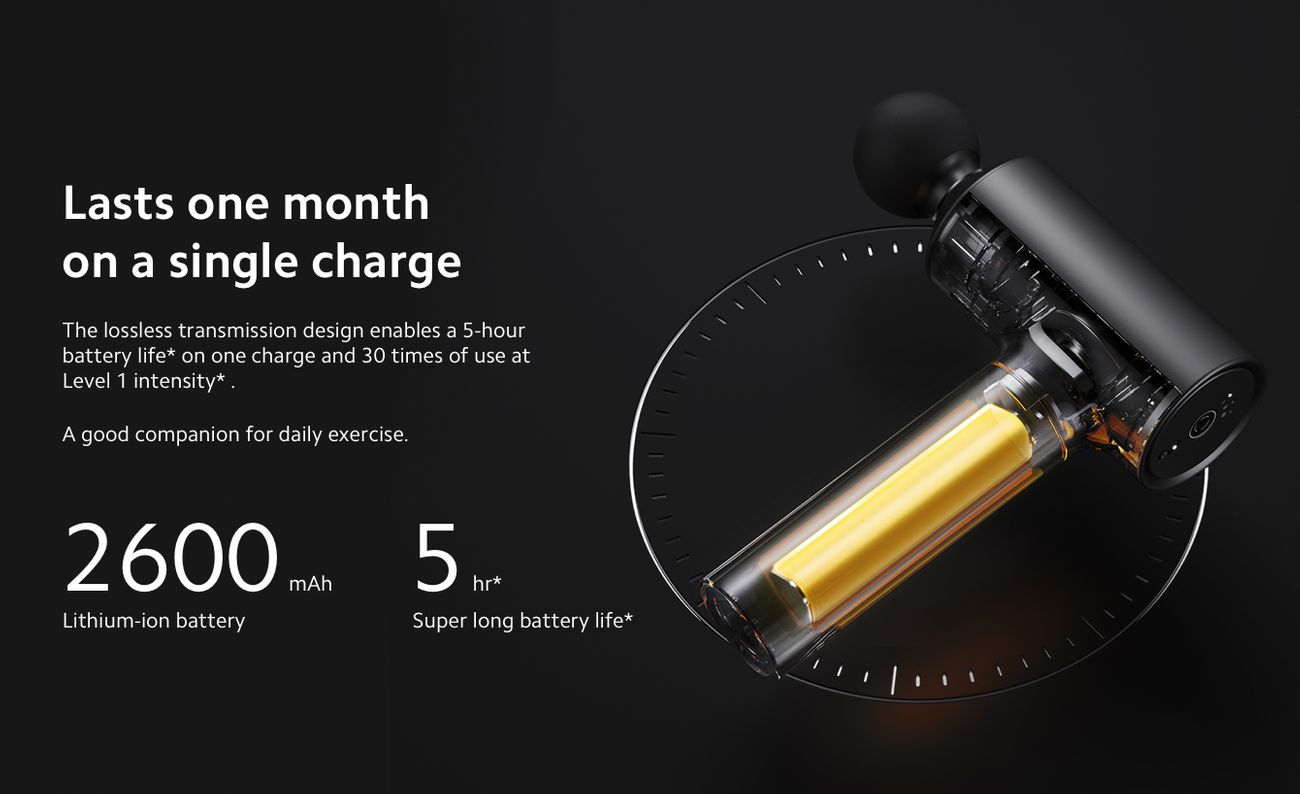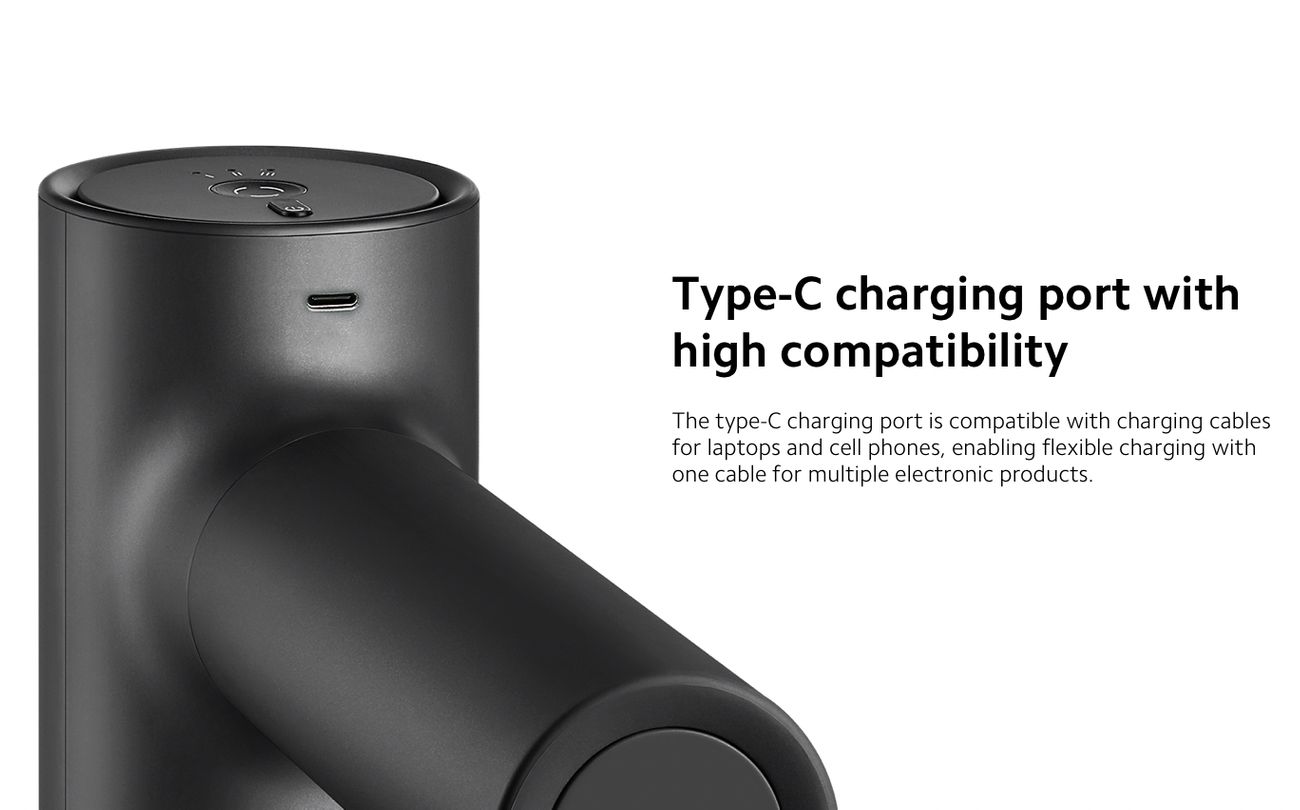 Cordless Use and Long Battery Life - Mijia tissue massage gun powered by a 2600mAh rechargeable lithium-ion batteries and with a Type-C charging port.