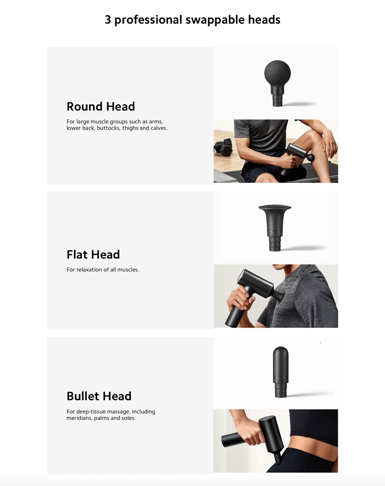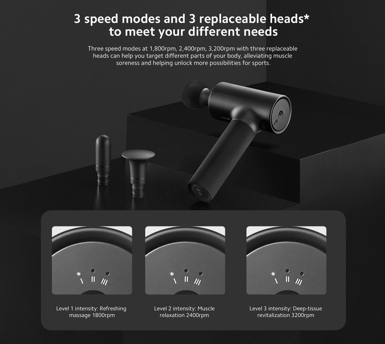 3 Adjustable Speeds + 3 Types of Massage Heads: 1800/2400/3200RPM three-speed vibration mode, ideal massager from daily relaxation to deep tissue percussion massage.