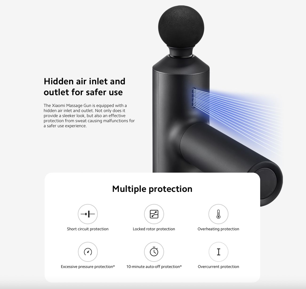 Safe to Use - The Mijia fascia gun features multiple security protection and adopts a hidden vent design which effectively prevent sweat from dripping into the the fascia gun.