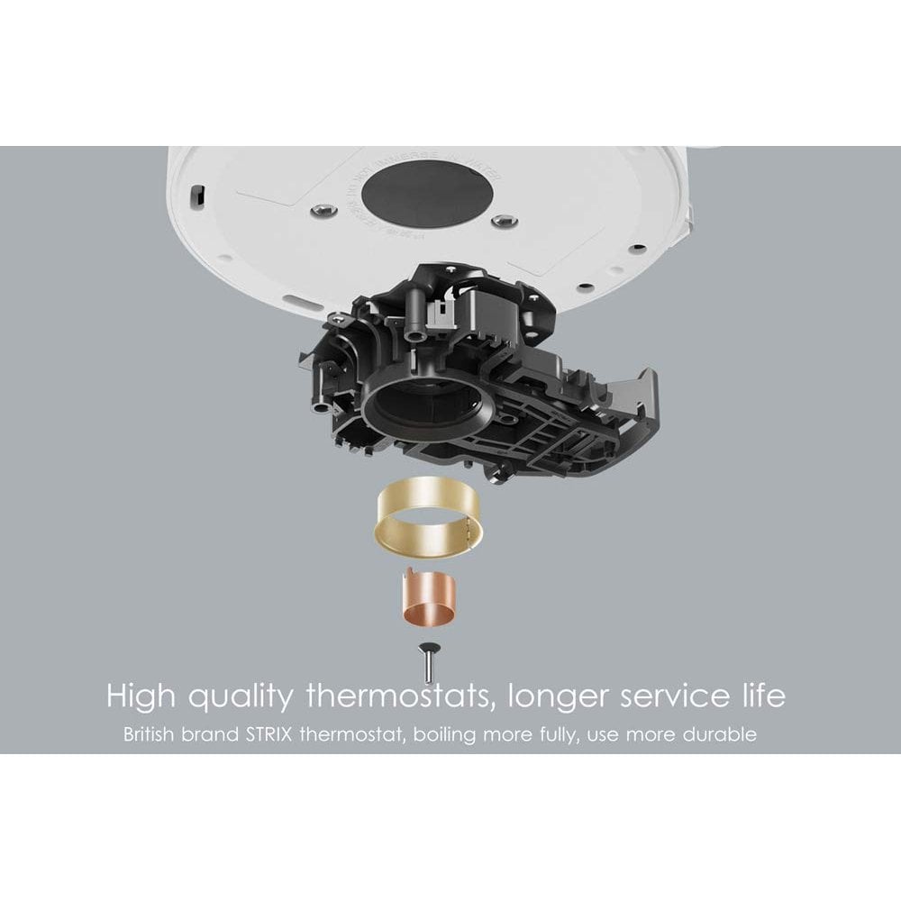 The kettle has triple security protection . In practice, this means that once the water boils, it disconnects from the power source. The power connector is designed to prevent accidents from electrical current.