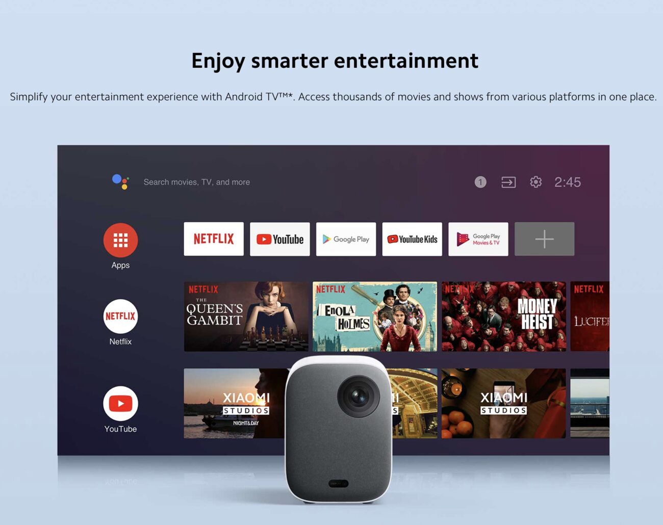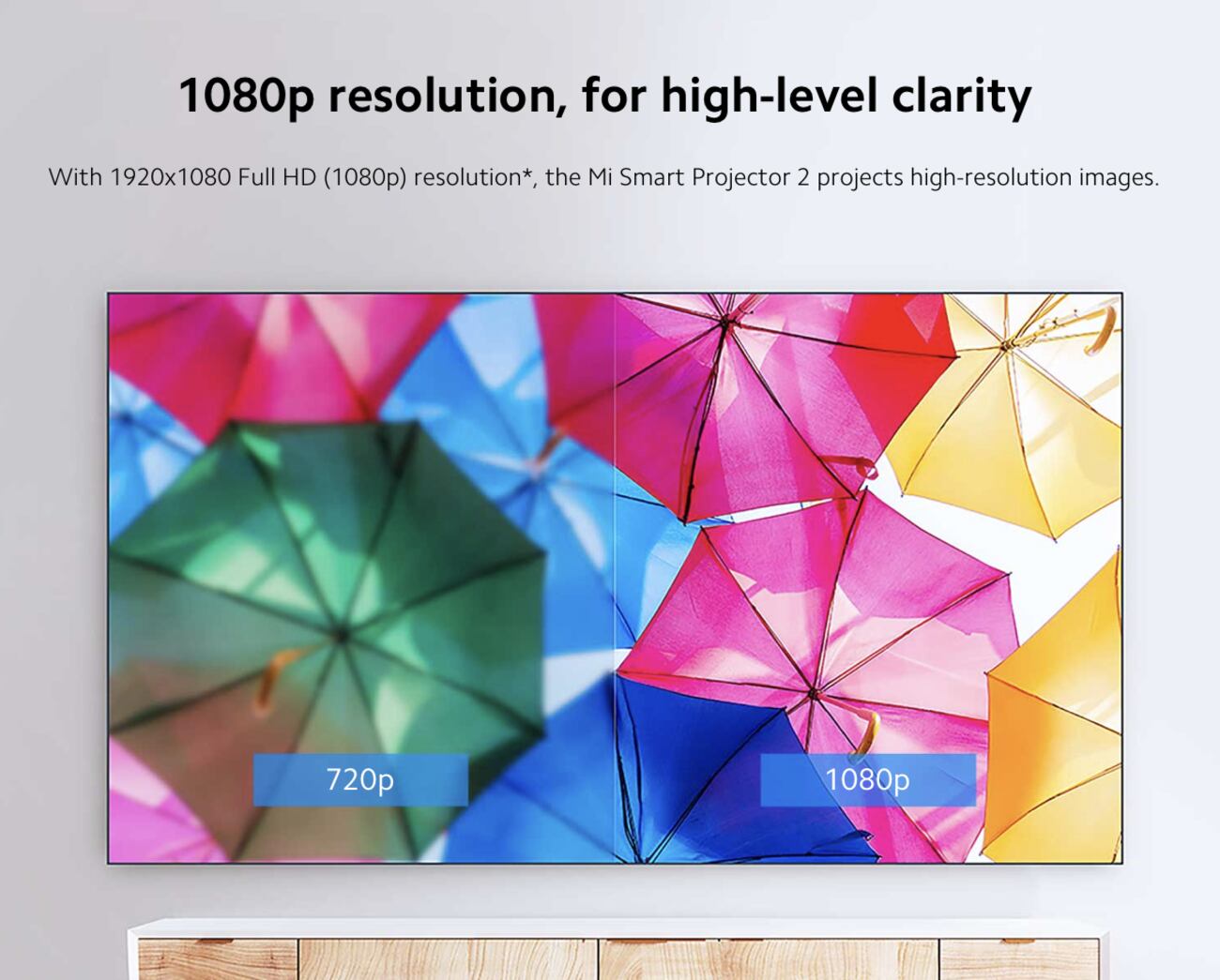 1080p resolution, for high-level clarity / With 1920x1080 Full HD (1080p) resolution*, the Mi Smart Projector 2 projects high-resolution images.