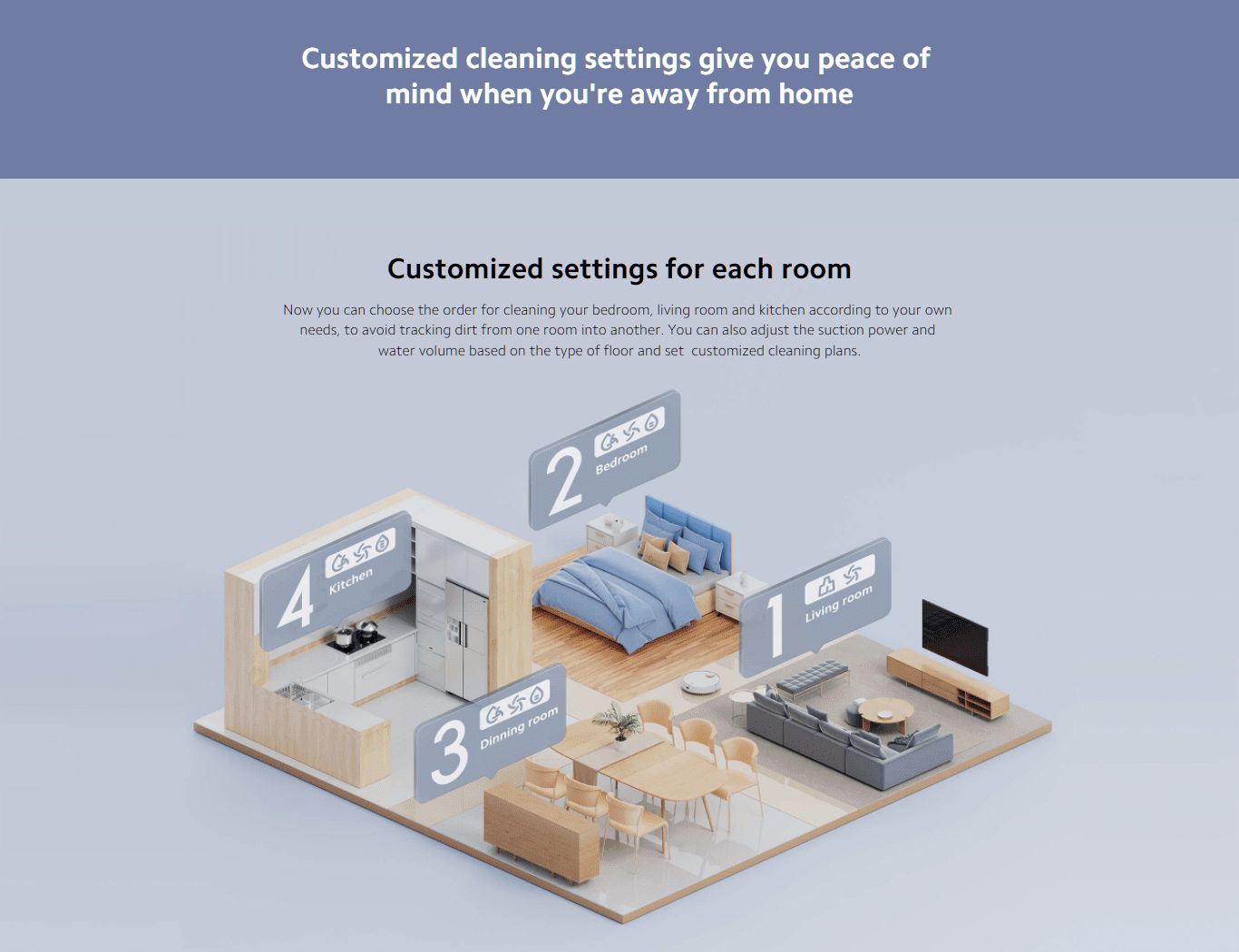 تقدر من التطبيق تغير اعدادات التنظيف لكل غرفة.
