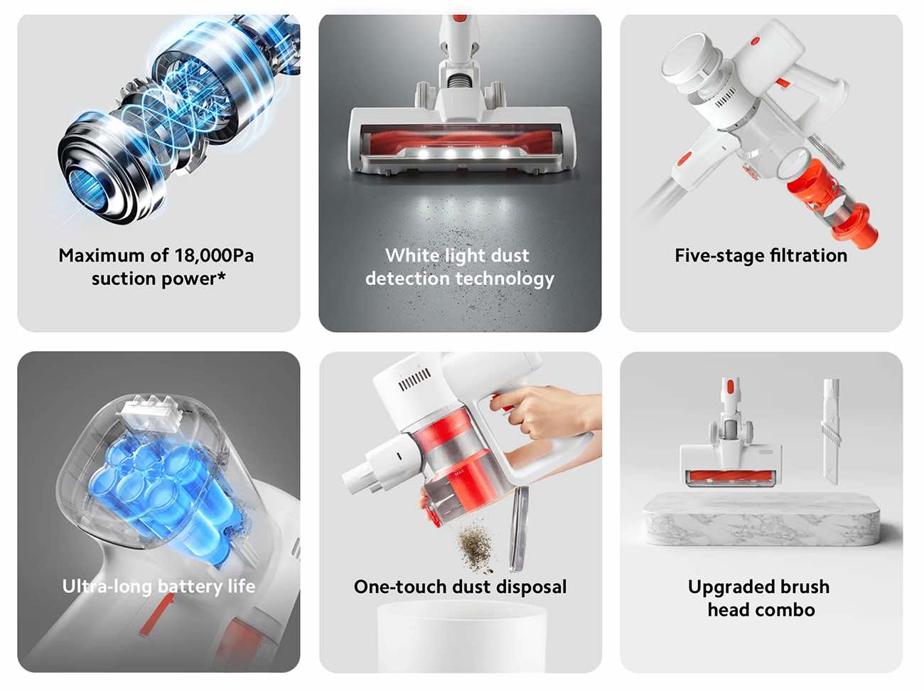 Cleaning and suction power up to 18,000 Pa.