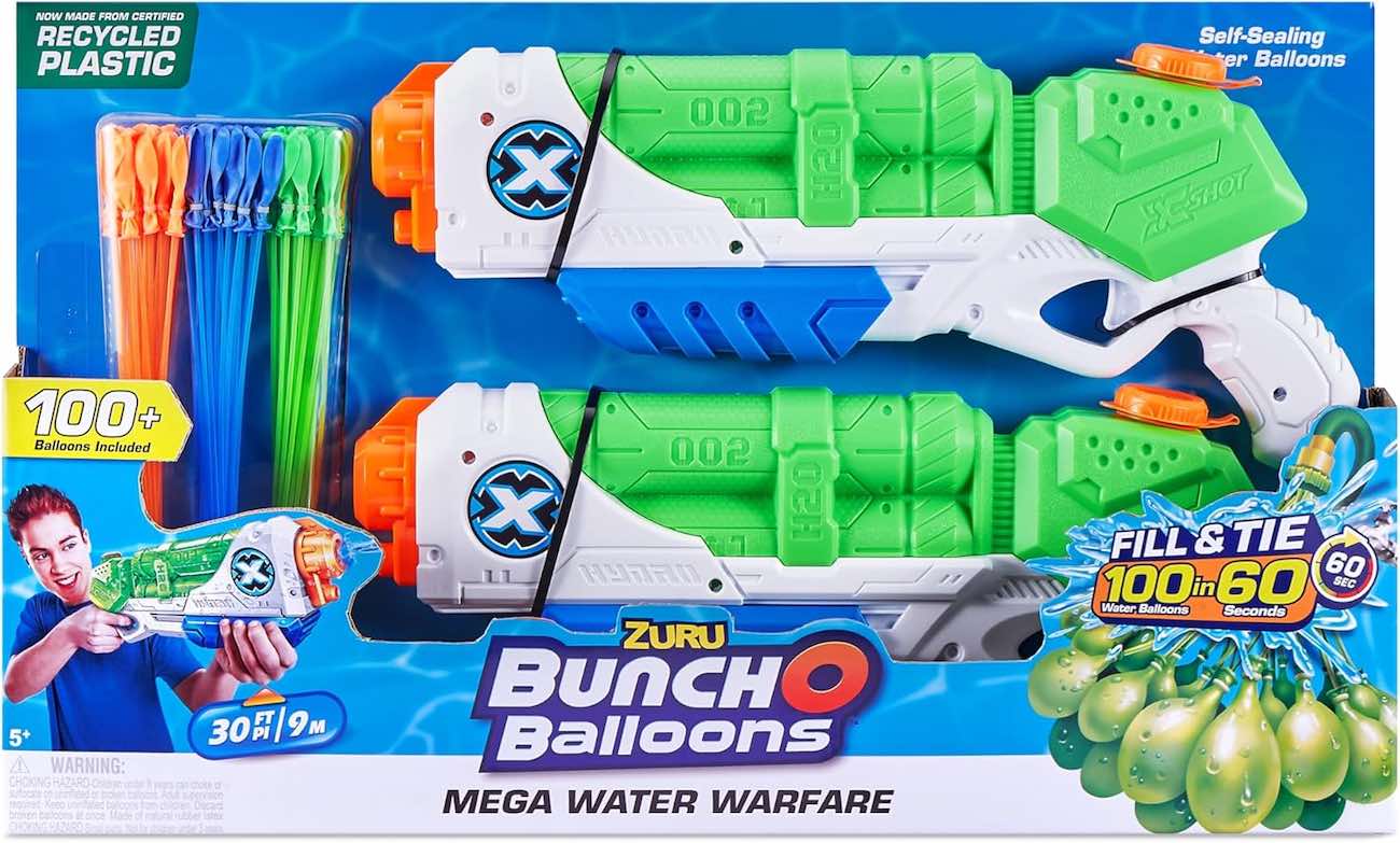 Includes 100 water balloons that can be filled and tied in just 60 seconds.