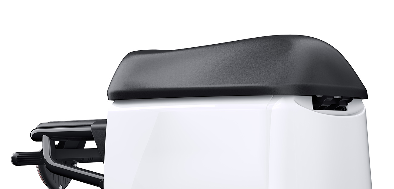 The scooter seat offers comfort and stability while riding.