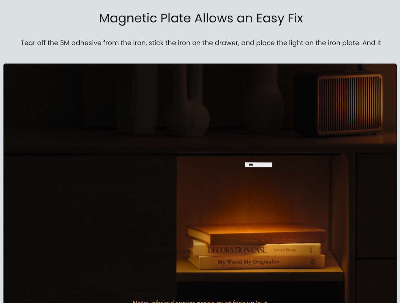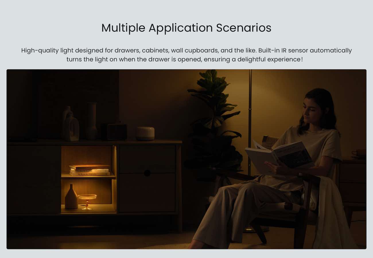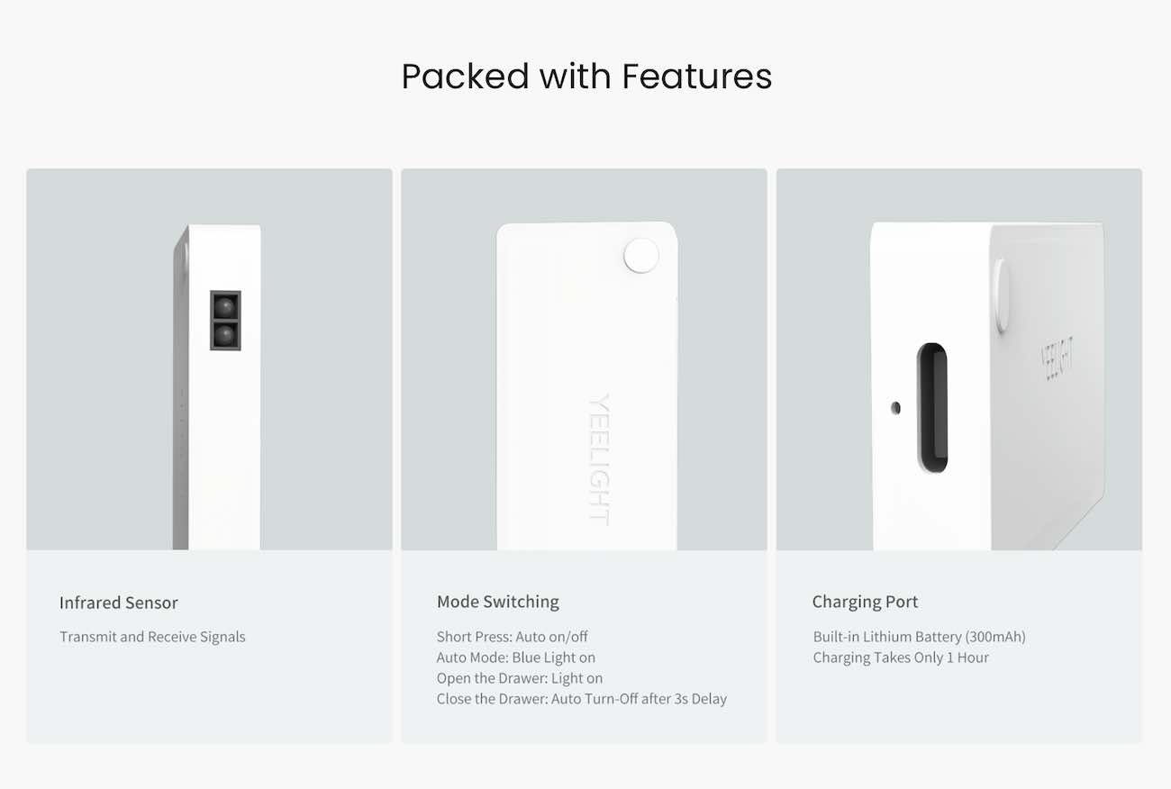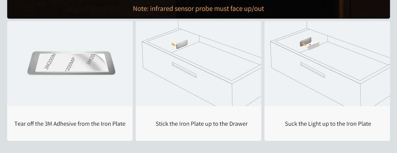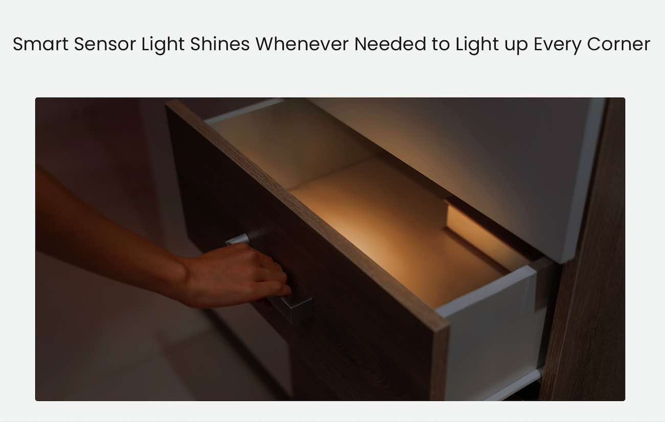 Equipped with a sensor that automatically turns on the light when a drawer is opened or someone approaches the area.