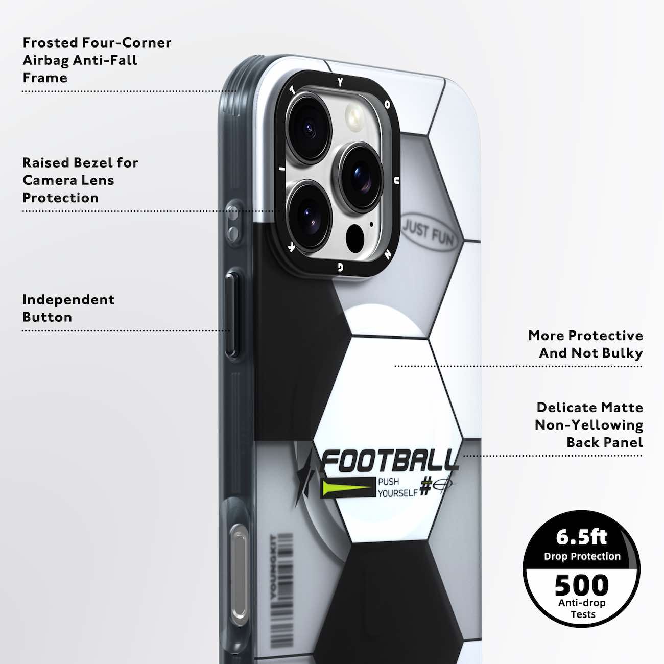 YoungKit Case for iPhone 16 Pro Max / Support MagSafe / Drop Resistant / Football Design in Qatar