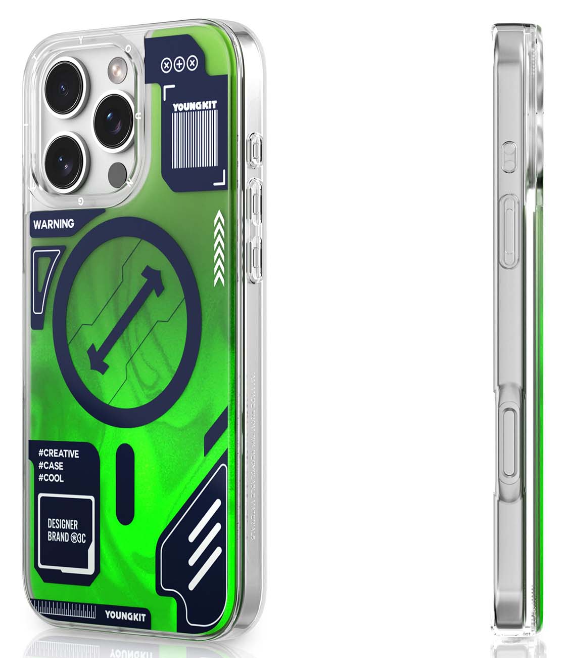 YoungKit Cyberpunk Case for iPhone 16 Pro / MagSafe / Glows in the Dark / Green in Qatar